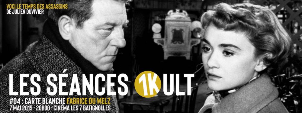 Les Séances 1Kult, ce sont des films bizarres, inclassables, fous, atypiques, dans la lignée de ce dont je traitais sur le site. Or, contrairement aux tentatives précédentes de rendez-vous de ce type, j’ai décidé de systématiser la présence d’un invité. Pour la prochaine, qui se déroulera le 7 mai prochain, c’est cette fois Fabrice du Welz (Calvaire, Vinyan, Adoration), qui a choisi Voici le temps des assassins de Julien Duvivier. On ne cesse depuis quelques années de redécouvrir le réalisateur, qui a de plus en plus les honneurs de la haute définition. C’est donc la copie restaurée par Pathé en 2016 qui sera projetée, et bien évidemment le film sera présenté par Fabrice du Welz.